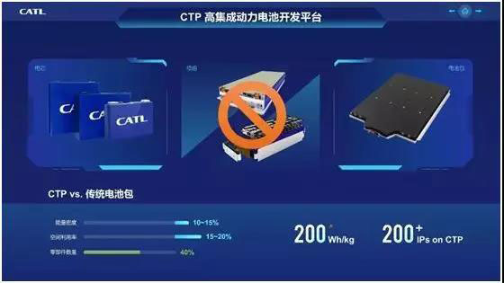 國(guó)內(nèi)電池廠商寧德時(shí)代推出了全新的CTP高集成動(dòng)力電池開發(fā)平臺(tái)(Cell To Pack),即電芯直接集成到電池包。