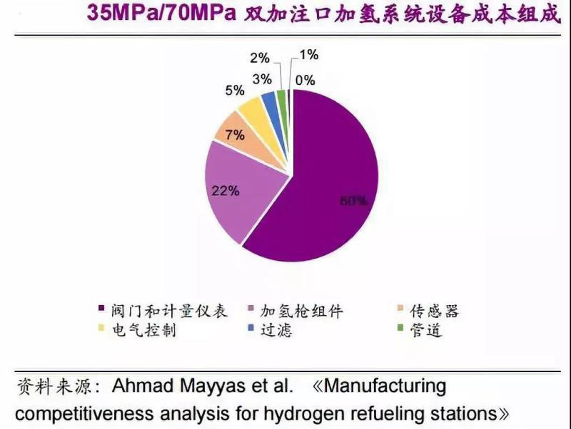 (1)設(shè)備成本中最主要的為閥門和計(jì)量?jī)x表等,占設(shè)備成本的60%左右,用于監(jiān)測(cè)壓力以及氫泄露相關(guān)的傳感器也是加氫系統(tǒng)成本的重要組成部分;