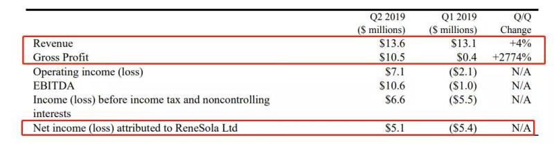 財報顯示,昱輝陽光第二季度開始恢復(fù)盈利,營收1360萬美元,毛利潤1050萬美元,凈收入為510萬美元,毛利率為77%,而2019年第一季度僅為2.8%,2018年第二季度為29.5%,也大大超出其55%至65%的指導(dǎo)范圍。