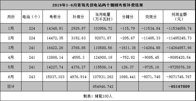統(tǒng)計(jì)顯示,2019年1-6月,青海光伏電站考核補(bǔ)償兌現(xiàn)總金額為-6516.7009萬元,風(fēng)電場站兌現(xiàn)總金額為-3077.7264萬元,兩者合計(jì)罰款約為9594萬元。