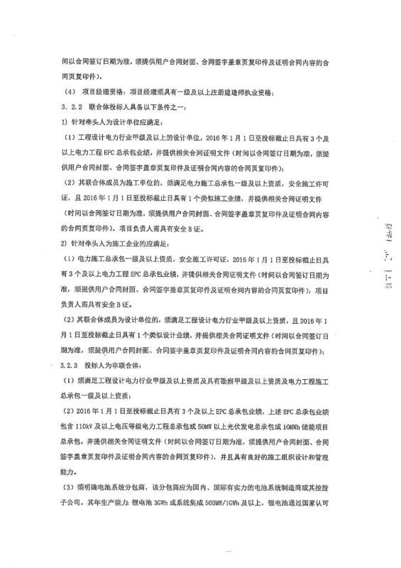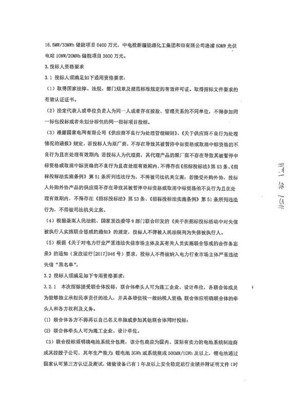 本次招標(biāo)接受聯(lián)合體投標(biāo),其中明確電池系統(tǒng)分包商應(yīng)為國(guó)內(nèi)、國(guó)際有實(shí)力的電池系統(tǒng)制造商或其控股子公司,并要求具有鋰電池3GWh或系統(tǒng)集成500MW/1GWh及以上的年生產(chǎn)能力。