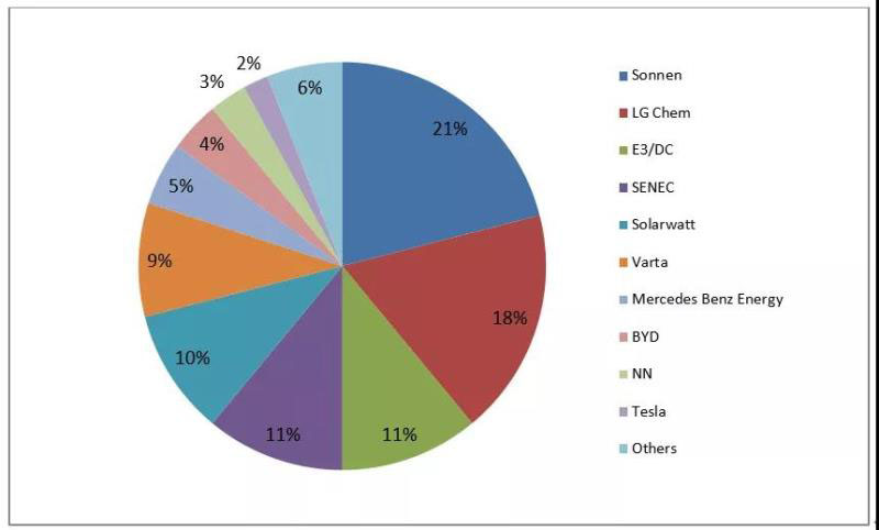 圖4 2017年德國家用儲能系統(tǒng)市場份額[7]