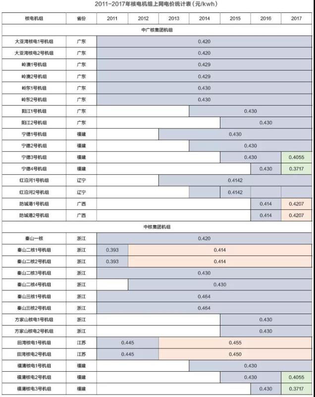 我國核電上網(wǎng)電價經(jīng)歷了“一廠一價”和“標(biāo)桿上網(wǎng)電價”兩個主要階段,目前執(zhí)行標(biāo)桿上網(wǎng)電價機(jī)制。比較核電標(biāo)桿上網(wǎng)電價與燃煤標(biāo)桿上網(wǎng)電價,2017年,有核省份中只有廣東省的燃煤標(biāo)桿上網(wǎng)電價高于核電標(biāo)桿上網(wǎng)電價,遼寧、江蘇、浙江、福建、山東、廣西、海南等其他省份均低于核電標(biāo)桿上網(wǎng)電價。