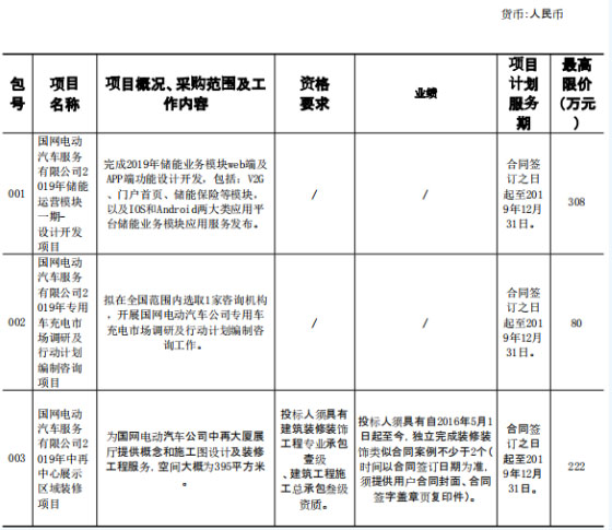 中國儲能網(wǎng)訊:國網(wǎng)電動汽車服務(wù)有限公司2019年第九批服務(wù)招標(biāo)采購項目進行招標(biāo)。內(nèi)容包括國網(wǎng)電動汽車服務(wù)有限公司2019年儲能運營模塊一期-設(shè)計開發(fā)項目擬采購?fù)瓿?019年儲能業(yè)務(wù)模塊web端及APP端功能設(shè)計開發(fā),包括:儲能V2G功能、門戶首頁、儲能保險等模塊,以及IOS和Android兩大類應(yīng)用平臺儲能業(yè)務(wù)模塊應(yīng)用服務(wù)發(fā)布;國網(wǎng)電動汽車服務(wù)有限公司2019年專用車充電市場調(diào)研及行動計劃編制咨詢項目擬在全國范圍內(nèi)選取1家咨詢機構(gòu),開展國網(wǎng)電動汽車公司專用車充電市場調(diào)研及行動計劃編制咨詢工作等。詳情如下: