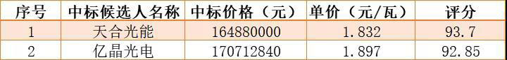 中國(guó)儲(chǔ)能網(wǎng)訊:9月27日,華潤(rùn)海原范臺(tái)村60MWp光伏項(xiàng)目、付套村30MWp光伏項(xiàng)目光伏組件集中采購(gòu)公示中標(biāo)候選人,天合光能以總報(bào)價(jià)164880000元、單價(jià)1.832元/瓦成為第一中標(biāo)候選人。