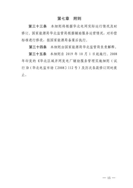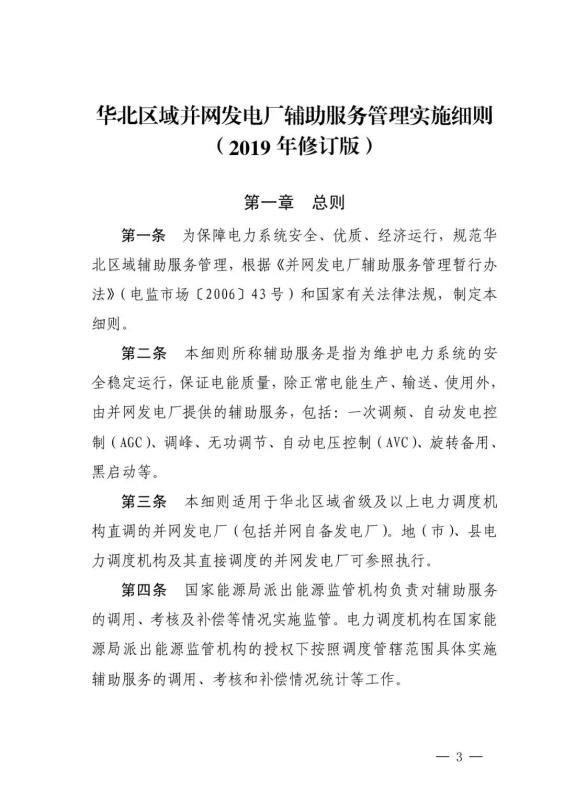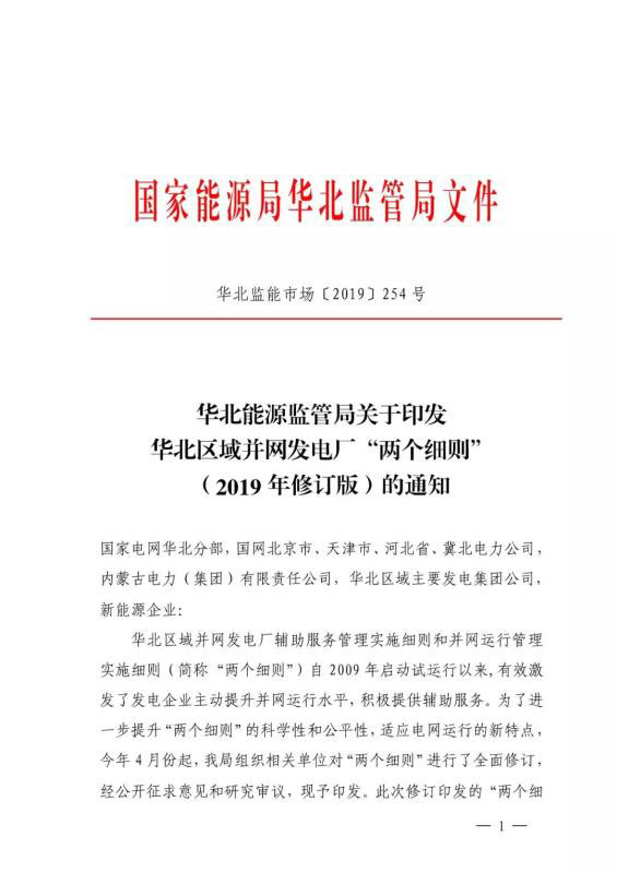 中國儲(chǔ)能網(wǎng)訊:9月25日,華北能監(jiān)局正式印發(fā)華北區(qū)域并網(wǎng)發(fā)電廠“兩個(gè)細(xì)則”(2019 年修訂版),要求自10月1日起正式執(zhí)行。以下為《華北區(qū)域并網(wǎng)發(fā)電廠輔助服務(wù)管理實(shí)施細(xì)則》全文。