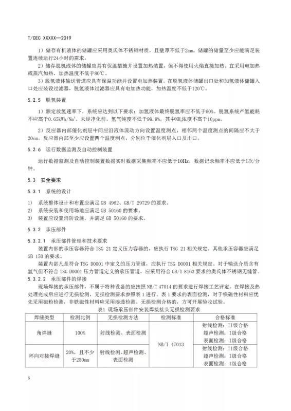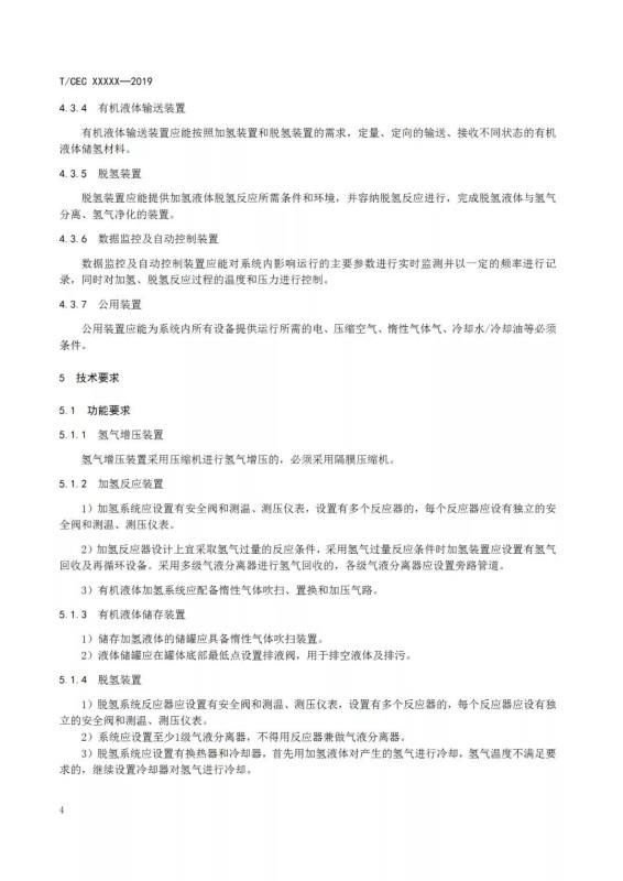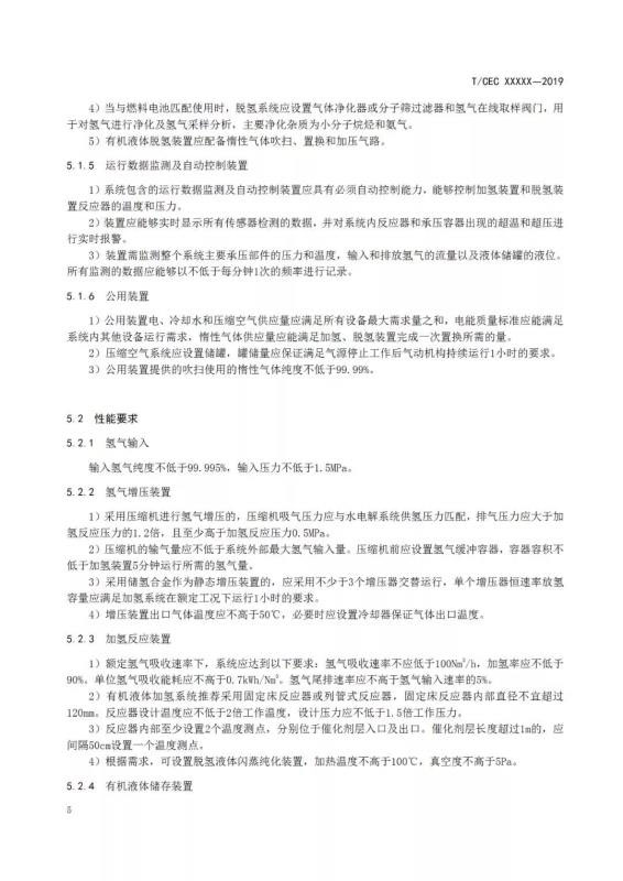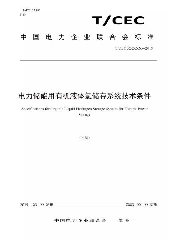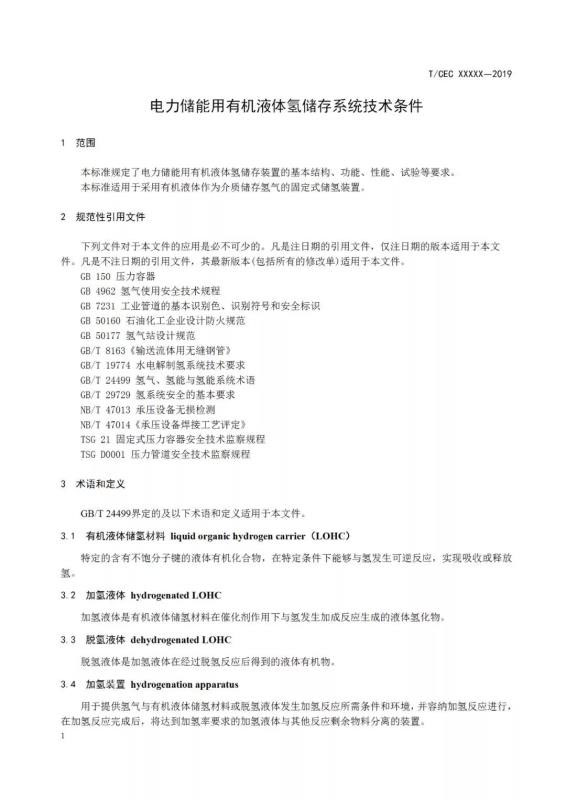 《電力儲能用有機液體氫儲存系統(tǒng)技術(shù)條件》標準征求意見稿