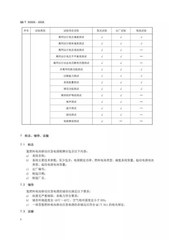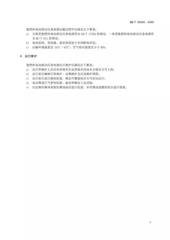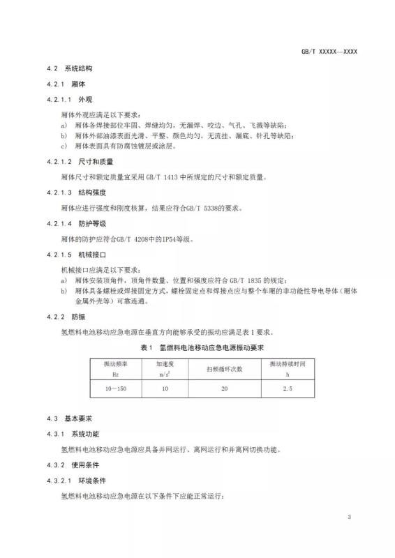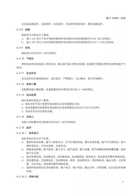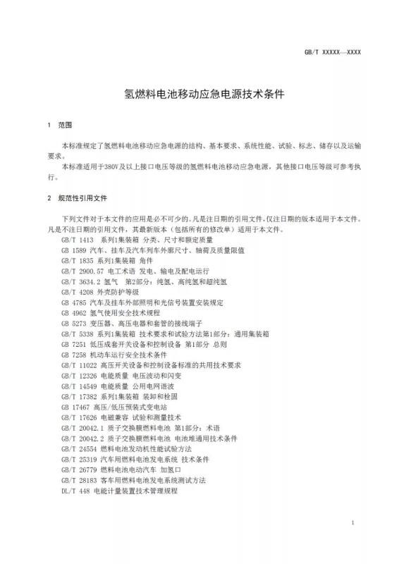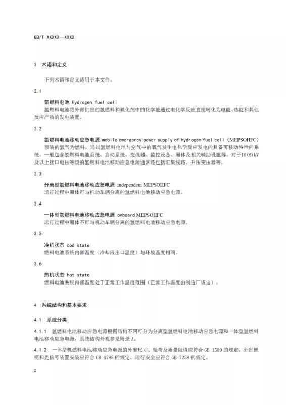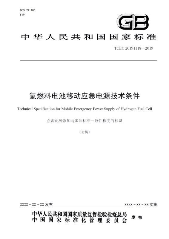 《氫燃料電池移動應急電源技術條件》標準征求意見稿