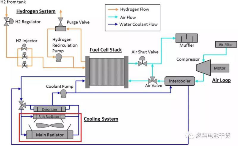 豐田Mirai燃料電池系統(tǒng)主副散熱器示意