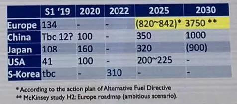 關于未來全球加氫站的數(shù)量和分布,巴特·比耶比克援引麥肯錫的預測稱,2025年之后,歐洲的加氫站數(shù)量將遠多于中國、美國和日本。到2030年,歐洲的加氫站數(shù)量將達到3750座。