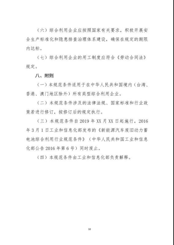 中國儲能網(wǎng)訊:9月30日,工信部發(fā)布了對《新能源汽車廢舊動力蓄電池綜合利用行業(yè)規(guī)范條件(修訂征求意見稿)》、《新能源汽車廢舊動力蓄電池綜合利用行業(yè)規(guī)范公告管理暫行辦法(修訂征求意見稿)》公開征求意見。