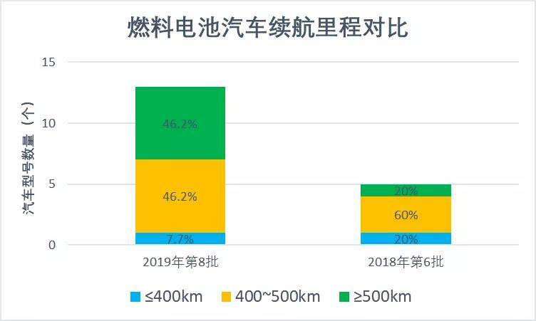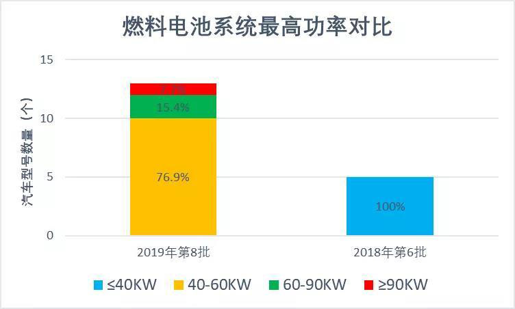 一批龍頭企業(yè)發(fā)展迅速,廣聚人才和資本優(yōu)勢(shì),展開業(yè)內(nèi)廣泛合作,產(chǎn)品性能的得到較大提升。對(duì)比工信部新能源汽車推廣應(yīng)用推薦車型目錄2018年第6批和2019年第8批燃料電池汽車性能,較短時(shí)間內(nèi),燃料電池及整車技術(shù)水平進(jìn)步明顯。