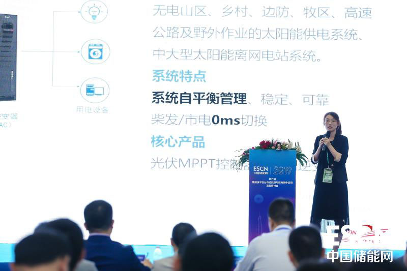 科華恒盛股份有限公司新能源事業(yè)部高級技術經(jīng)理張依鈴做《 微電網(wǎng)控制策略與應用》報告。