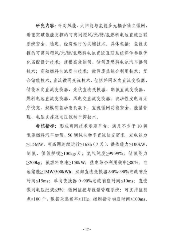 “可再生能源與氫能技術”重點專項2020年度項目申報指南建議