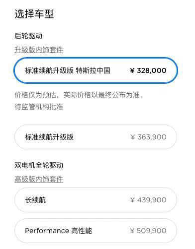 2019年10月11日,該公司中國版Model 3的官網(wǎng),悄然發(fā)生了變化:原來進(jìn)口版本的“標(biāo)準(zhǔn)續(xù)航版”消失了,取而代之的是“標(biāo)準(zhǔn)續(xù)航升級版 特斯拉中國”,價(jià)格都為32.8萬元。