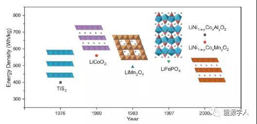 圖1 鋰離子電池正極材料發(fā)展歷史