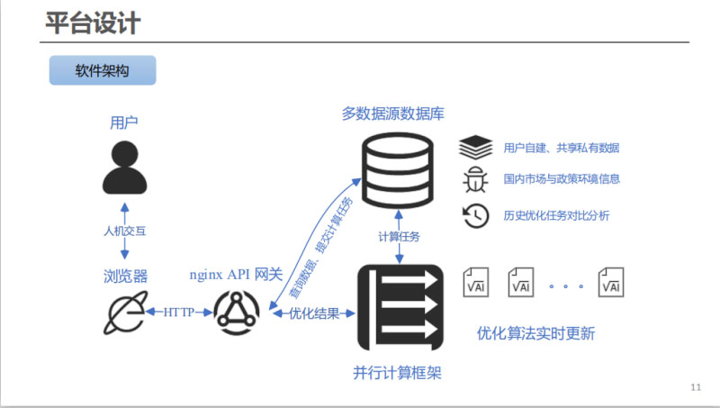 我們是做云平臺的評估軟件,希望有共享數(shù)據(jù)庫的功能,包括儲能的壽命模型,支持客戶上傳和共享。這是我們的軟件架構(gòu),時間有限我不詳細展開講。