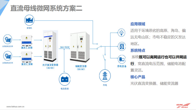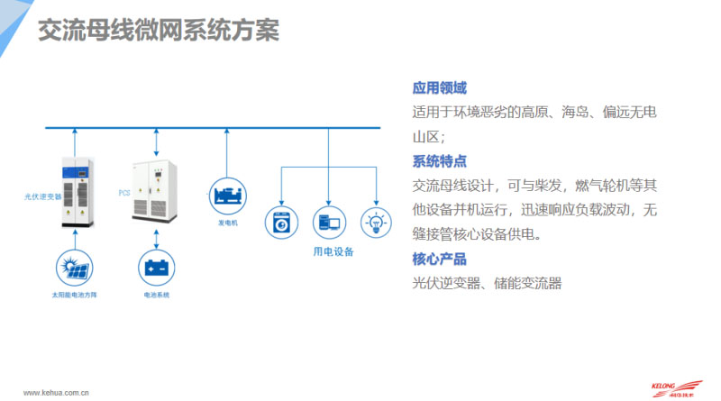 除此之外,剛才提到一種目前城市里應(yīng)用比較多的并網(wǎng)型的微網(wǎng),并網(wǎng)型微網(wǎng)依托于大電網(wǎng)的存在,目前工商業(yè)用得比較多,既可以并網(wǎng)設(shè)計(jì),也可以依托于我們的儲(chǔ)能系統(tǒng)進(jìn)行離網(wǎng)的應(yīng)用,包括科華恒盛也會(huì)獨(dú)立配置并/離網(wǎng)切換柜,使整個(gè)系統(tǒng)實(shí)現(xiàn)10毫秒的切換。