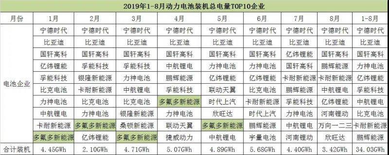 2019年以來,得益于配套主要客戶奇瑞汽車,多氟多新能源連續(xù)5個月進(jìn)入裝機(jī)電量前十,并在上半年以394042KWh的裝機(jī)電量位居國內(nèi)第9名,三元軟包鋰電池裝機(jī)電量上升至第二位。