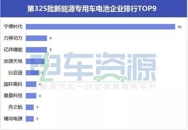 排名前三分別為寧德時代(56)、力神動力(8)、億緯鋰能(8)。