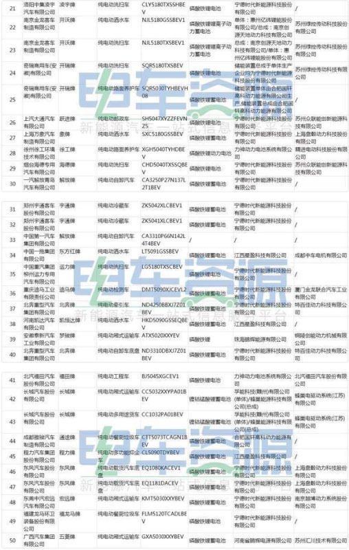 據統(tǒng)計,本批次新車公示的新能源專用車配套電池企業(yè)除去一款車型未知配套電池企業(yè),已知電池配套企業(yè)33家,電車資源整理如下: