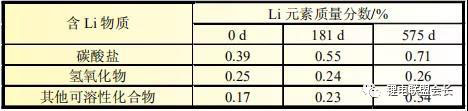 表3 使用ASR電解液100%DOD電池陽(yáng)極可溶性鋰構(gòu)成