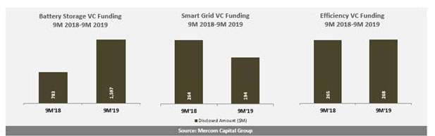 整體而言,1-9月,電池存儲,智能電網(wǎng)和能源效率行業(yè)的企業(yè)融資總規(guī)模(包括風(fēng)險(xiǎn)投資資金,公共市場和債務(wù)融資)為27億美元,較之去年同期的33億美元下降18.2%。