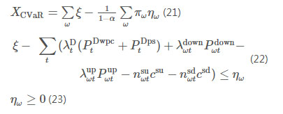 式中:ξ為風(fēng)險價值(value at risk,VaR);ηω為場景ω下收益與風(fēng)險價值的差額。