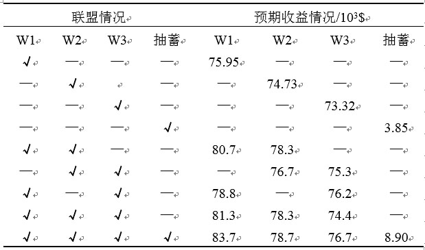 表2 不同聯(lián)盟情況下預(yù)期收益情況 Tab. 2 Expected revenue in different coalitions