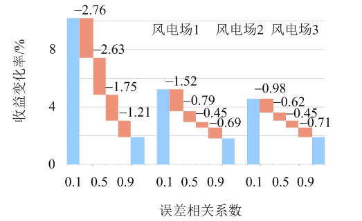 4.2.1 風(fēng)電預(yù)測精度及出力相關(guān)系數(shù)對收益分配的影響