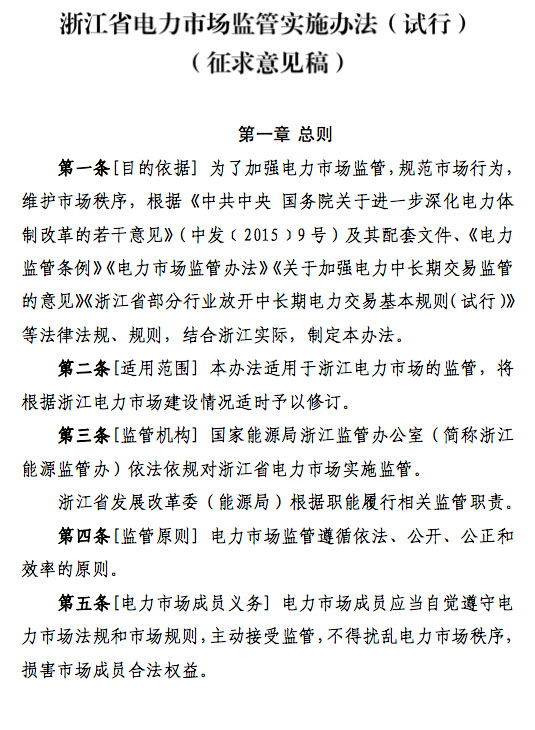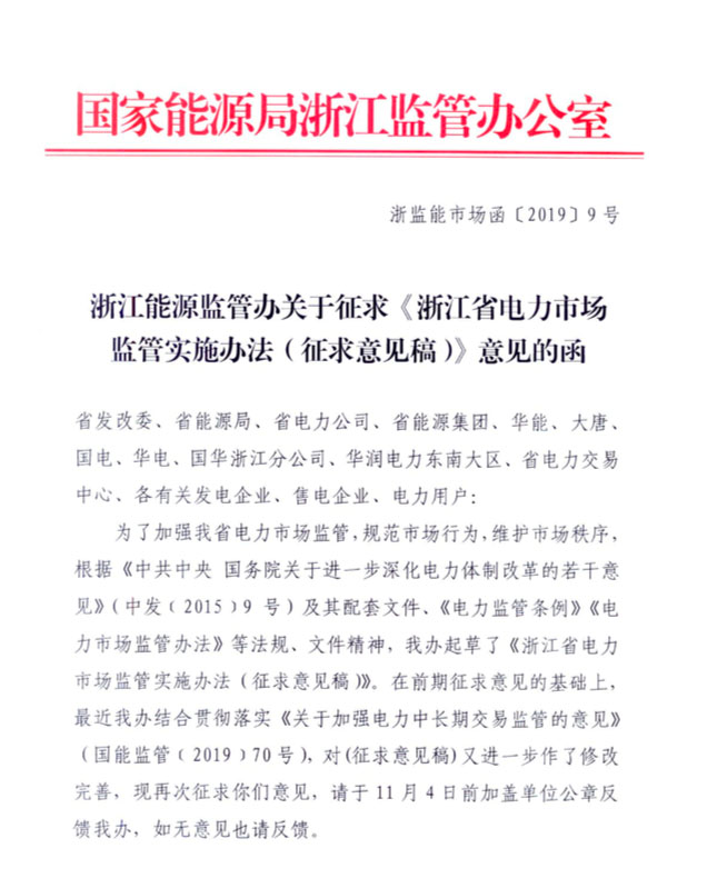 中國儲能網(wǎng)訊:近日,浙江能源監(jiān)管辦關(guān)于征求《浙江省電力市場監(jiān)管實施辦法(征求意見稿)》意見的函。
