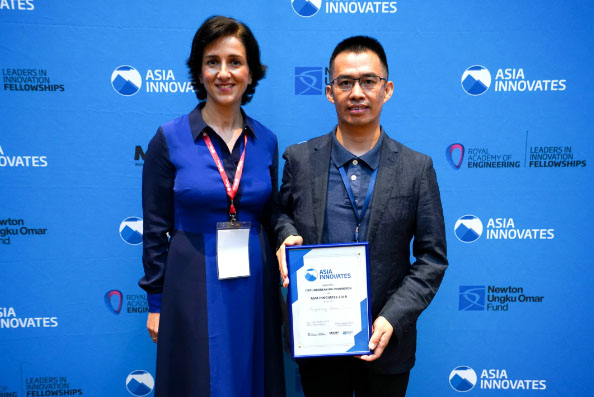 中國(guó)儲(chǔ)能網(wǎng)訊:近日,電工所陳永翀研究員在亞洲創(chuàng)新峰會(huì)(Asia Innovates 2019 Summit)榮獲牛頓基金創(chuàng)新突破獎(jiǎng),以表彰陳永翀及其團(tuán)隊(duì)在鋰漿料儲(chǔ)能電池技術(shù)方向的開(kāi)創(chuàng)性工作。英國(guó)皇家工程院副主管Ana Avaliani主持頒獎(jiǎng)儀式,中國(guó)工程院國(guó)際合作局任洪濤處長(zhǎng)出席頒獎(jiǎng)典禮。