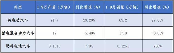 表1 1-9月國內(nèi)新能源汽車產(chǎn)銷量