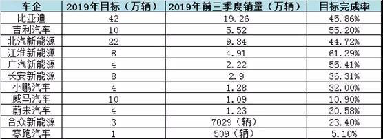 具體來看,其中比亞迪汽車,以前9個月累計銷售19.26萬輛新能源汽車位居第一,同比增長34.31%,但是也只完成了42萬銷量目標(biāo)的45.86%。