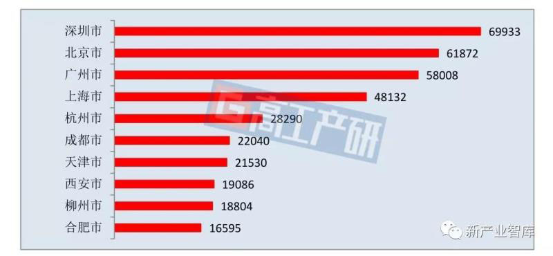 2019年前三季度我國新能源汽車上牌量TOP10城市(輛)