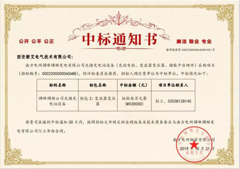 中國儲能網(wǎng)訊:近日,新艾電氣中標南方電網(wǎng)光儲充電站設(shè)備采購項目。據(jù)了解,在此次的招標項目中,深圳寶清光儲充電站充放電樁試制項目主要采購充放電樁;深圳寶清光儲充電站變流器變壓器項目主要采購變流器變壓器;儲能管理平臺基礎(chǔ)硬件項目主要采購用于平臺搭建和部署的服務(wù)器、安防設(shè)備、機柜等設(shè)備。該項目中新艾主要提供變流器變壓器,項目規(guī)模為630kW儲能變流器1套、36kW儲能變流器1套、240kWDC/DC變流器1套、630kVA變壓器1臺、40kVA變壓器1臺。