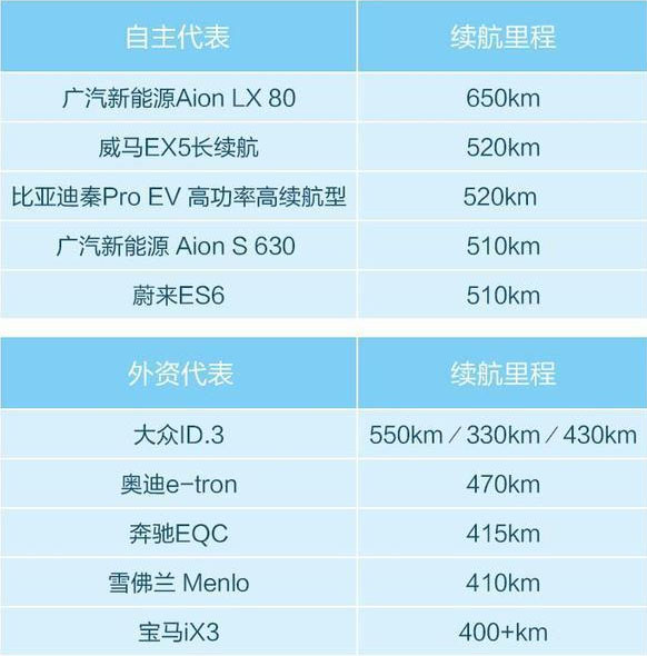 續(xù)航里程:外資車企普遍落后