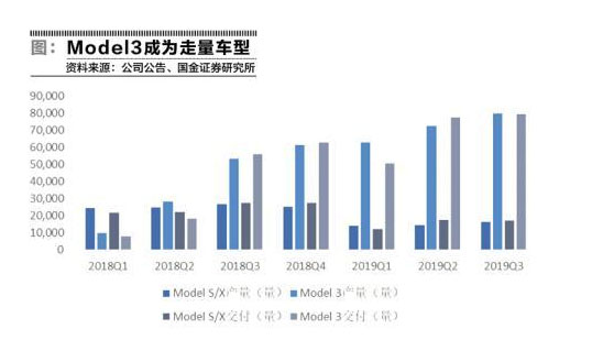 原因三:國(guó)產(chǎn)版Model 3是特斯拉由生存過(guò)渡到盈利的重要助手。2018年,特斯拉公司在Model 3產(chǎn)能爬坡中實(shí)現(xiàn)季度性的盈利,營(yíng)收同比大幅增長(zhǎng)82%,24.5萬(wàn)輛的交付量超越公司成立以來(lái)銷量的總和。根據(jù)銷量快報(bào),公司2019年三季度Model 3的產(chǎn)/銷量為79837輛/79600輛,Model 3和Model S/X的產(chǎn)量比大致在5:1,銷量比約4:1,而國(guó)產(chǎn)版Model 3定位走量,將是公司未來(lái)業(yè)績(jī)?cè)龊竦闹饕獊?lái)源。