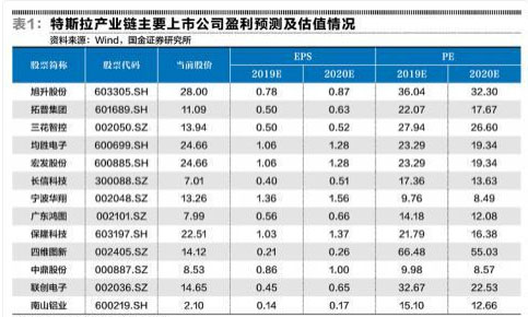 相關(guān)公司具提業(yè)績(jī)、增估值機(jī)會(huì),類似蘋(píng)果產(chǎn)業(yè)鏈的效應(yīng)。iPhone系列已經(jīng)問(wèn)世12年,在其高增長(zhǎng)紅利下產(chǎn)業(yè)鏈享受10年業(yè)績(jī)和股價(jià)高增長(zhǎng)。7年前,蘋(píng)果公司全球156家供應(yīng)商中,中國(guó)大陸廠商僅有8家,而蘋(píng)果公布的2019年全球200大供應(yīng)商信息,中國(guó)大陸蘋(píng)果產(chǎn)業(yè)鏈供應(yīng)商增長(zhǎng)近3倍,供應(yīng)商數(shù)量占比升至15%。特斯拉在行業(yè)顛覆性、產(chǎn)品認(rèn)可度、產(chǎn)業(yè)鏈長(zhǎng)度及廣度、產(chǎn)品單體價(jià)值等方面均不亞于甚至優(yōu)于蘋(píng)果,其產(chǎn)業(yè)鏈未來(lái)有望復(fù)制甚至超越蘋(píng)果產(chǎn)業(yè)鏈對(duì)中國(guó)制造企業(yè)的拉動(dòng)。