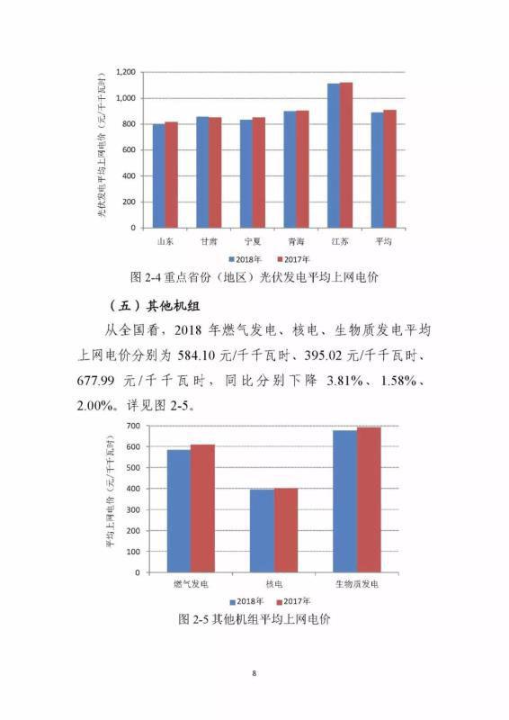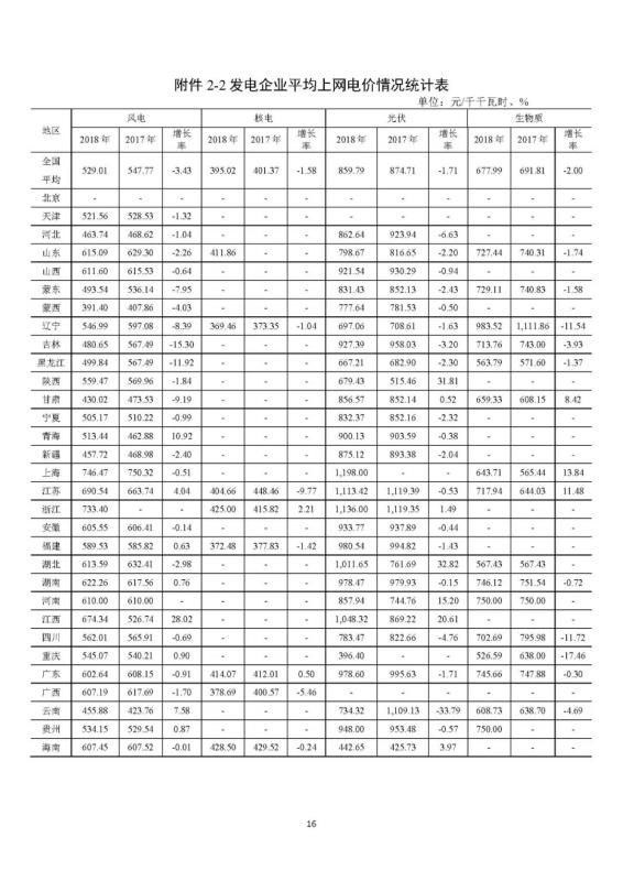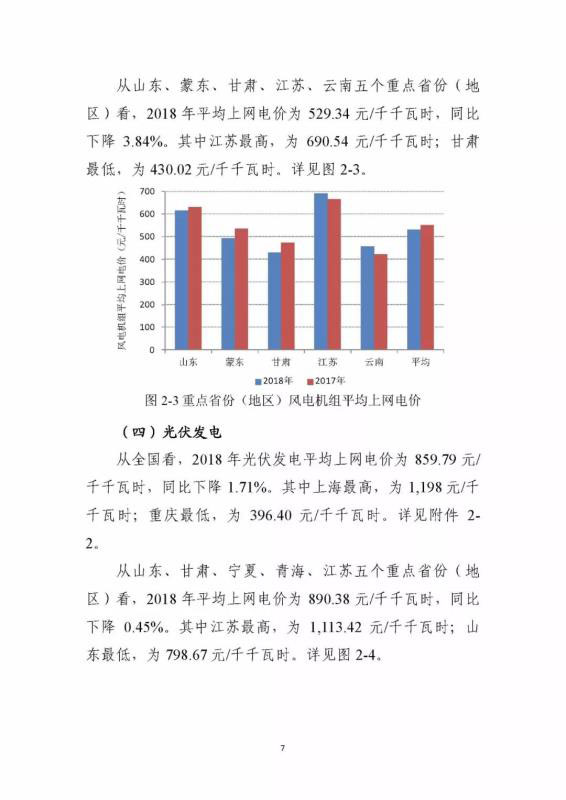 中國儲能網(wǎng)訊:剛剛,國家能源局官方網(wǎng)站發(fā)布了2018 年度全國電力價格情況監(jiān)管通報。通報顯示:從全國看,2018 年風(fēng)電機組平均上網(wǎng)電價為 529.01 元/ 千千瓦時,同比下降 3.43%。其中上海最高,為 746.47 元/ 千千瓦時;蒙西最低,為 391.40 元/千千瓦時。從全國看,2018 年光伏發(fā)電平均上網(wǎng)電價為 859.79 元/ 千千瓦時,同比下降 1.71%。其中上海最高,為 1,198 元/千 千瓦時;重慶最低,為 396.40 元/千千瓦時。