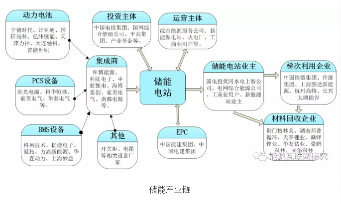 ·電網(wǎng)側(cè)儲能間接效益包括節(jié)能減排、技術(shù)擴散、產(chǎn)業(yè)關(guān)聯(lián)及乘數(shù)效果。電網(wǎng)側(cè)儲能可延緩燃煤機組建設(shè),增加可再生能源消納,因此具有突出的節(jié)能減排效益,主要體現(xiàn)在減少燃煤電廠化石燃料消耗,減少氮氧化物、二氧化硫等大氣污染物,以及溫室氣體排放;電網(wǎng)側(cè)儲能建設(shè)會培養(yǎng)和造就大量技術(shù)人員和管理人員,使得先進的儲能技術(shù)在社會上得到擴散和推廣,如電化學儲能建設(shè)促進電池技術(shù)進步,可擴散到電動汽車等行業(yè),對全社會帶來效益;電網(wǎng)側(cè)儲能項目涉及到眾多的上下游產(chǎn)業(yè),原材料供應(yīng)、設(shè)備制造、系統(tǒng)集成、項目運營等眾多產(chǎn)業(yè)都將由于電網(wǎng)側(cè)儲能項目的建設(shè)獲益,刺激上下游產(chǎn)業(yè)得到發(fā)展;電網(wǎng)側(cè)儲能項目實施使原來閑置的站址、設(shè)備等資源得到利用,促進地區(qū)就業(yè)、增加稅收等,從而產(chǎn)生一系列的連鎖反應(yīng),刺激地區(qū)經(jīng)濟發(fā)展乃至影響到其他地區(qū)。以電化學儲能為例,其產(chǎn)業(yè)鏈如下圖所示。