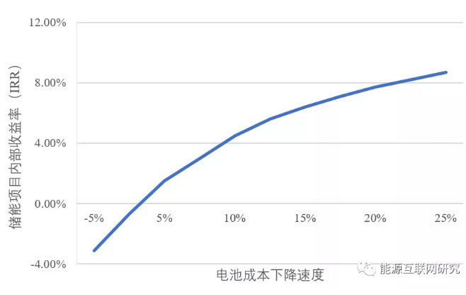 電池成本下降速度對內(nèi)部收益率的影響如下圖所示。