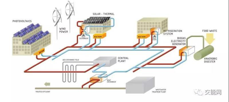 其中電力可部分或全部通過可再生能源供應(yīng),剩余電力負荷從電網(wǎng)獲取,電力自主供應(yīng)一般可通過分布式光伏、風電等多種新能源,配合儲能及小型(冷)熱電聯(lián)產(chǎn);熱需求可通過鍋爐、熱電聯(lián)產(chǎn)、光熱、熱泵配合儲熱供應(yīng);冷量通過壓縮式或吸收式制冷機或冷熱電聯(lián)產(chǎn)供應(yīng);燃氣則多與當?shù)貧饩W(wǎng)直接獲取,或就近生產(chǎn)生物質(zhì)燃氣。