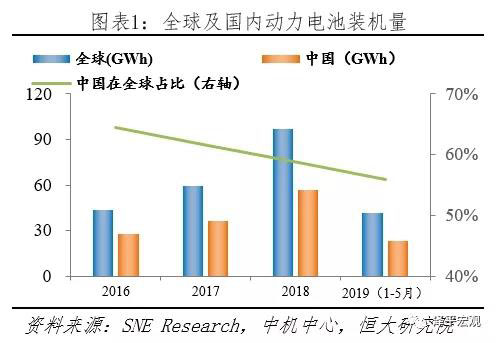 受益新能源汽車產(chǎn)銷規(guī)模擴大及單車帶電量提升,動力電池市場保持高速增長,未來仍有較大發(fā)展空間。2019年1-5月國內(nèi)市場動力電池裝機量23.4GWh,同比增長83.9%。按照2025年新能源汽車產(chǎn)量590萬輛測算,動力電池需求量將達到330.6GWh,約為2018年裝機量的6倍。行業(yè)競爭激烈,本土電池巨頭崛起。下游新能源汽車由導入期邁入成長期、補貼退坡、技術(shù)性能要求提升等因素加劇了電池行業(yè)優(yōu)勝劣汰,市場集中度提升。2018年我國動力電池總產(chǎn)能達260GWh、銷售不到60GWh,產(chǎn)能結(jié)構(gòu)性過剩嚴重,過去5年內(nèi)動力電池企業(yè)數(shù)量減少2/3。2019年上半年國內(nèi)市場前十名廠商均為本土廠商,合計占據(jù)87.9%市場份額,全球市場中寧德時代以25.4%市占率超過日本松下位列第一。從政策端看,過去國家針對動力電池產(chǎn)業(yè)出臺近30項重大政策,主要集中在競爭管理、技術(shù)引導等方面。
