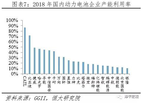整體產(chǎn)能過剩,結(jié)構(gòu)性問題突出。由于行業(yè)規(guī)模效應、政策扶持、資本涌入等因素,我國動力電池產(chǎn)能擴張迅猛,當前產(chǎn)能嚴重過剩,且高端產(chǎn)能不足、低端產(chǎn)能利用率極低。據(jù)國家863電動車重大專項動力電池測試中心主任王子冬披露,2018年我國動力電池總產(chǎn)能達260GWh,銷售僅50GWh。據(jù)GGII統(tǒng)計,2019Q2我國動力電池企業(yè)整體產(chǎn)能利用率只有32.4%,2018年龍頭CATL產(chǎn)能利用率高達86%,而排名第3的捷威動力產(chǎn)能利用率只有49%不到一半,第10名星恒動力只有25%。