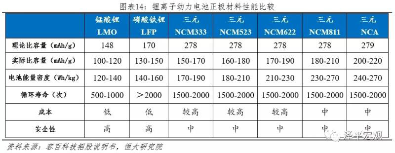 商用鋰離子動力電池正極材料主要有錳酸鋰、磷酸鐵鋰、三元體系,其中三元體系又可細分為鎳鈷錳NCM和鎳鈷鋁NCA。三元材料在能量密度方面有明顯優(yōu)勢,已成為應用主流。
