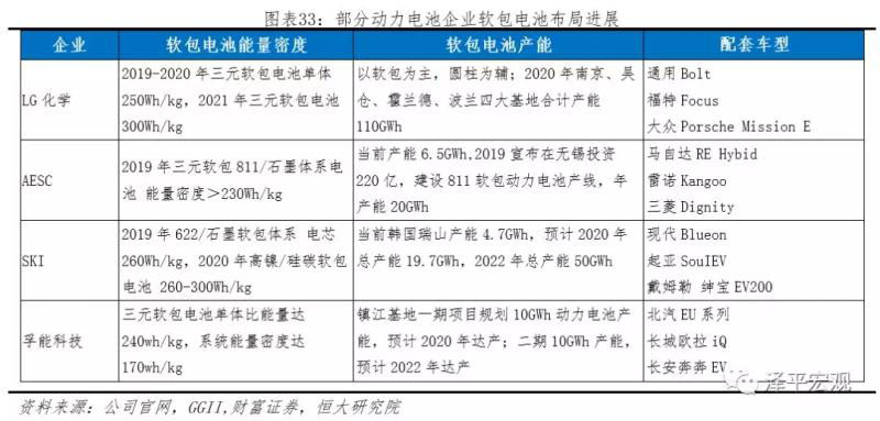 成組效率不佳、成本偏高、產(chǎn)品一致性差等問題造成軟包電池商業(yè)化進程偏慢,但軟包電池的高能量密度、高安全性、高倍率特性使得軟包具有很大的發(fā)展?jié)摿?。在消費領域,軟包電池滲透率就超過70%。目前全球軟包電池巨頭LG化學等紛紛擴大產(chǎn)能,開發(fā)的軟包電池已應用于日產(chǎn)、通用、大眾、雷諾、現(xiàn)代、戴姆勒等主流車企。據(jù)EV sales統(tǒng)計,2018年全球新能源乘用車銷量TOP10車型,軟包電池配套占2款;銷量TOP10車企中7家已采用軟包動力電池方案。據(jù)GGII統(tǒng)計,2018年國內(nèi)新能源乘用車上軟包動力電池裝機達5.1GWh,占比15.4%。隨著配套軟包電池新車型發(fā)布,預計軟包未來市場占比提升。