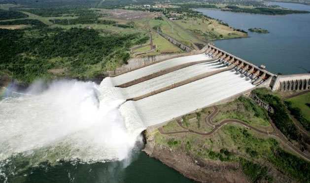 伊泰普水電站(Itaipu Binacional, Itaipu Dam),位于巴拉那河流(世界第五大河,年徑流量7250億立方米)經(jīng)巴西與巴拉圭兩國(guó)邊境的河段。是目前世界第二大水電站,由巴西與巴拉圭共建,發(fā)電機(jī)組和發(fā)電量由兩國(guó)均分。目前共有20臺(tái)發(fā)電機(jī)組(每臺(tái)70萬(wàn)千瓦),總裝機(jī)容量1400萬(wàn)千瓦,年發(fā)電量900億度,其中2008年發(fā)電948.6億度。是當(dāng)今世界裝機(jī)容量第二大,發(fā)電量第二大水電站,僅次于我國(guó)三峽電站。