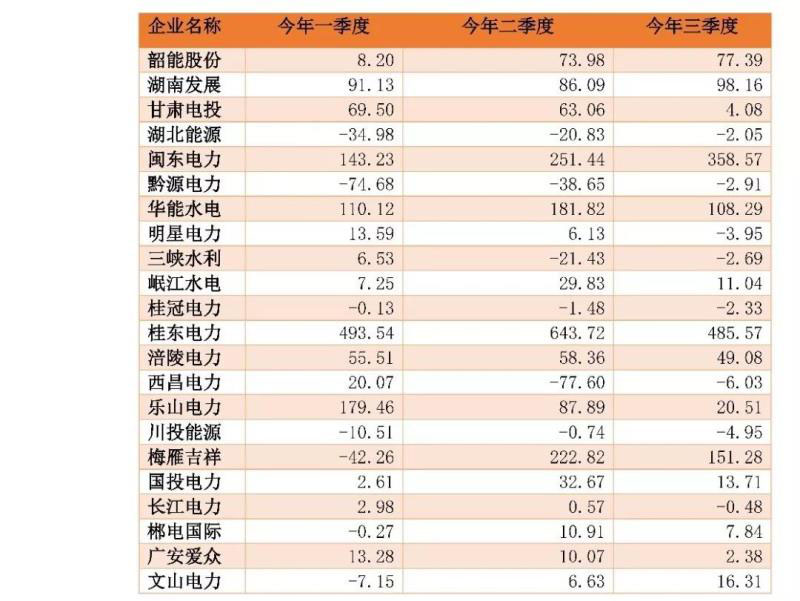 圖10:2018-2019年三季度水電行業(yè)凈利潤(rùn)情況