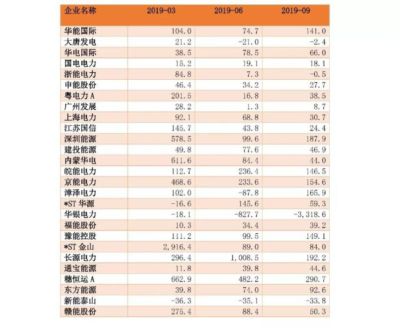 圖7:2018-2019年三季度火電行業(yè)凈利潤(rùn)情況